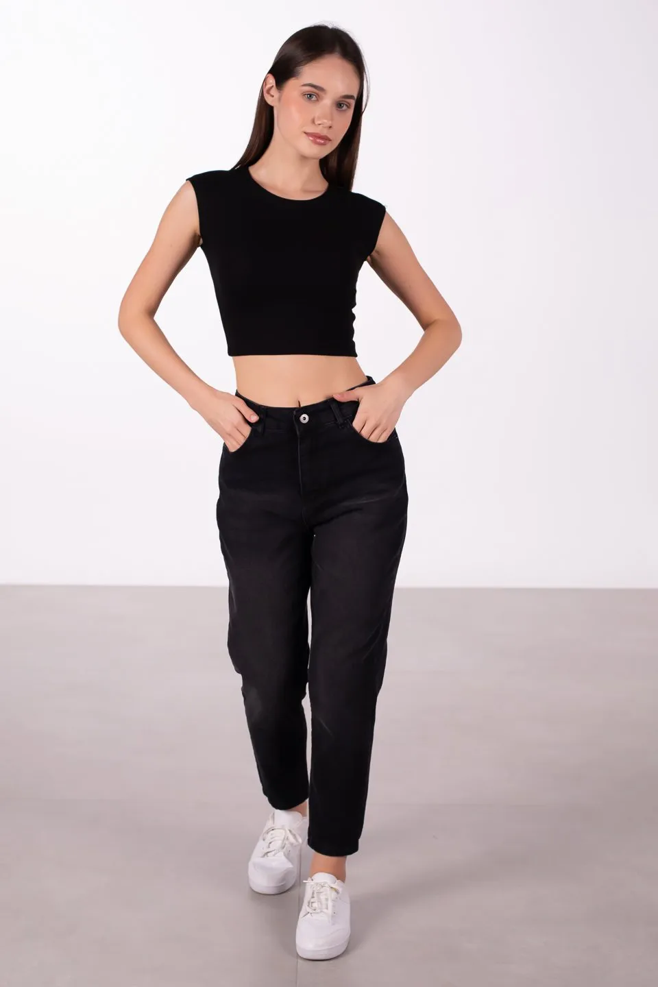 بنطلون جينز بخصر مرتفع وتفاصيل تطريز للنساء - Beyond Store