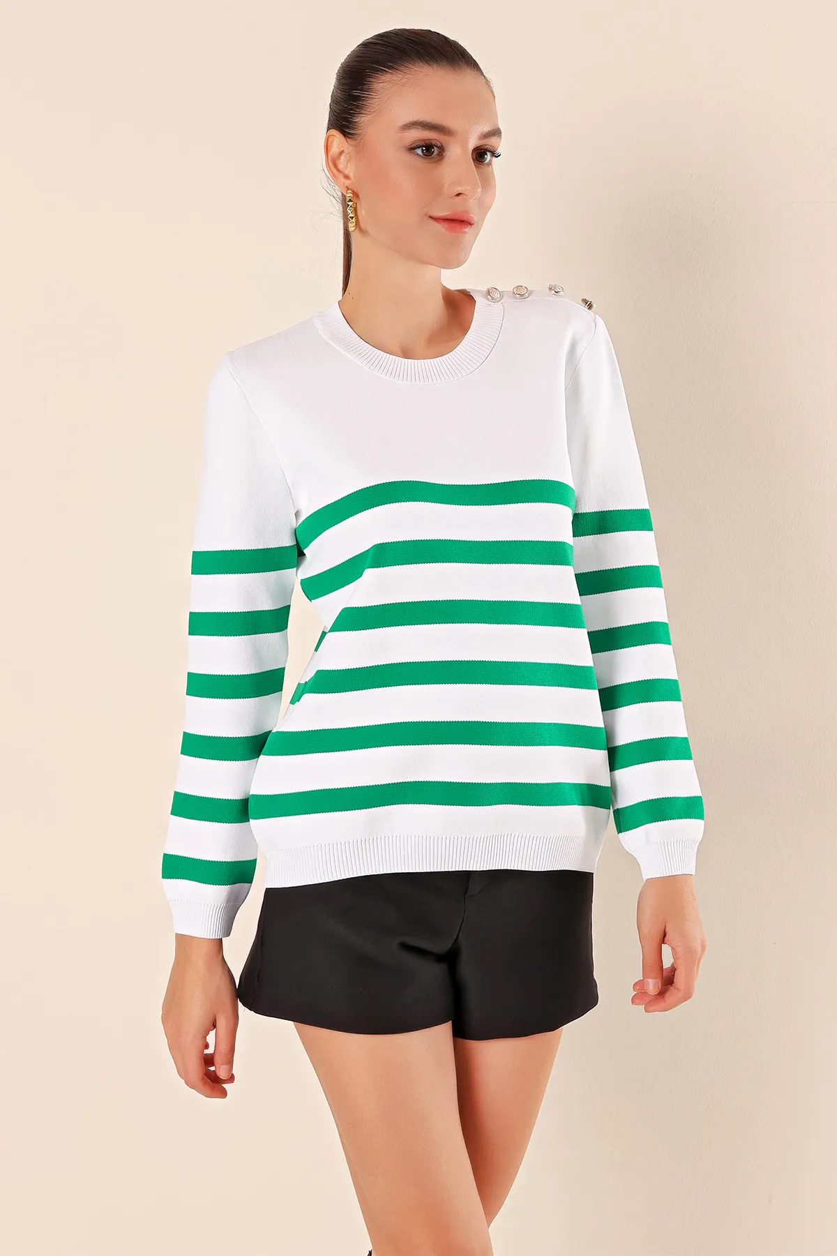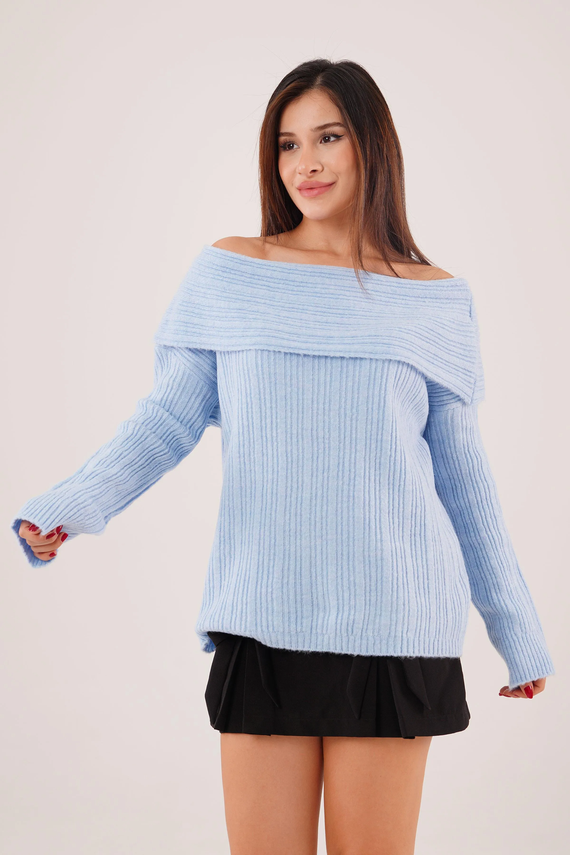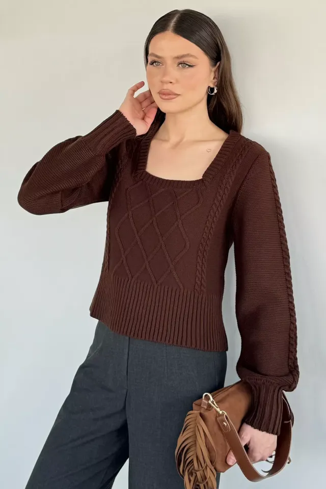 مميزات المنتج: كنزة محبوكة بأكمام طويلة بتصميم واسع مزخرفة