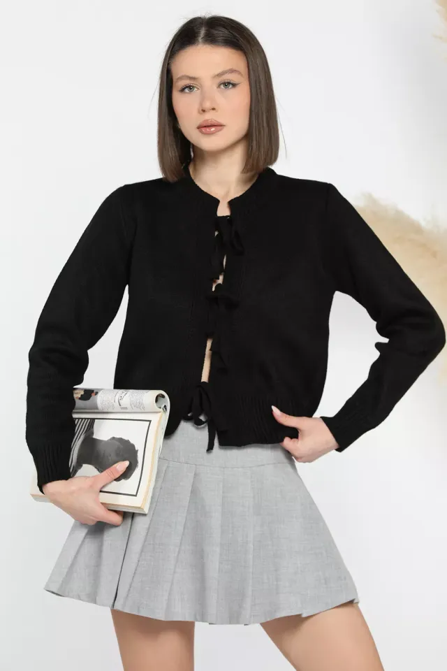 كارديجان محبوك بتفاصيل فيونكة للنساء