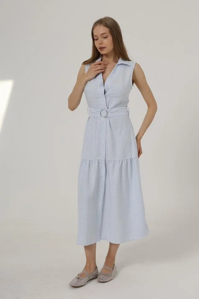 فستان كاجوال لامع بأكمام طويلة وياقة دائرية وتفاصيل حجرية من قطعتين - Beyond Store