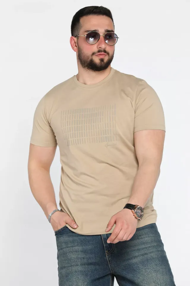 تيشيرت رجالي بياقة دائرية وطبعة حروف، مصنوع من مزيج من ٥٠٪ بوليستر، ٤٨٪ فيسكوز، و٢٪ إيلاستين لراحة ومرونة فائقة. مثالي للارتداء اليومي، قابل للغسل على درجة حرارة ٣٠ درجة مئوية.
