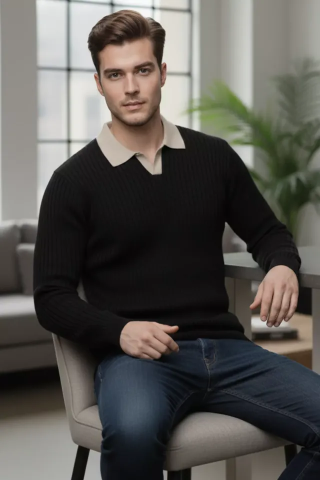 سترة رجالية محبوكة مخططة بقصّة Slim Fit ورقبة دائرية، مصنوعة من مزيج متوازن من ٥٠٪ قطن و٥٠٪ أكريليك. توفر الدفء والراحة بمظهر أنيق، مثالية للارتداء اليومي. قابلة للغسل في الغسالة على درجة حرارة ٣٠ درجة مئوية.