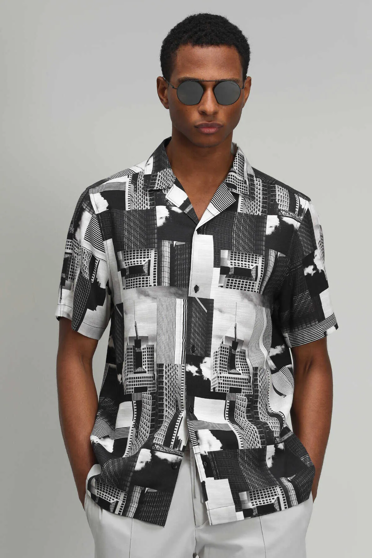 قميص رجالي منقوش بياقة مفتوحة وقصة مريحة - Beyond Store