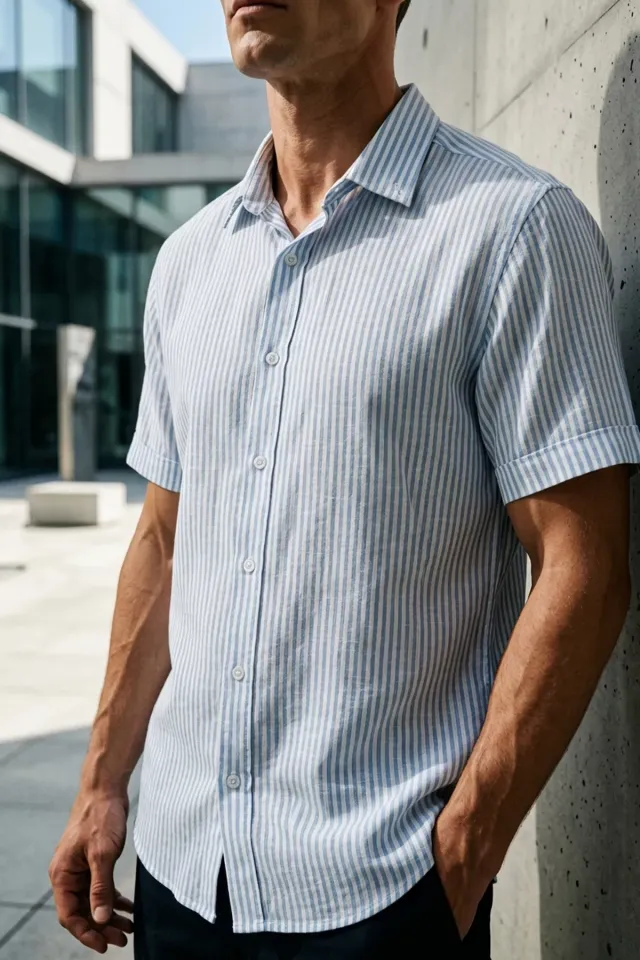 قميص رجالي بأكمام طويلة مصنوع من ٧٠٪ قطن و٣٠٪ بوليستر. تصميم بسيط مع أزرار للإغلاق، يمنحك مظهرًا أنيقًا وراحة طوال اليوم. مثالي للملابس الرسمية وغير الرسمية. قابل للغسل في الغسالة على درجة حرارة ٣٠ درجة مئوية للحفاظ على الجودة.