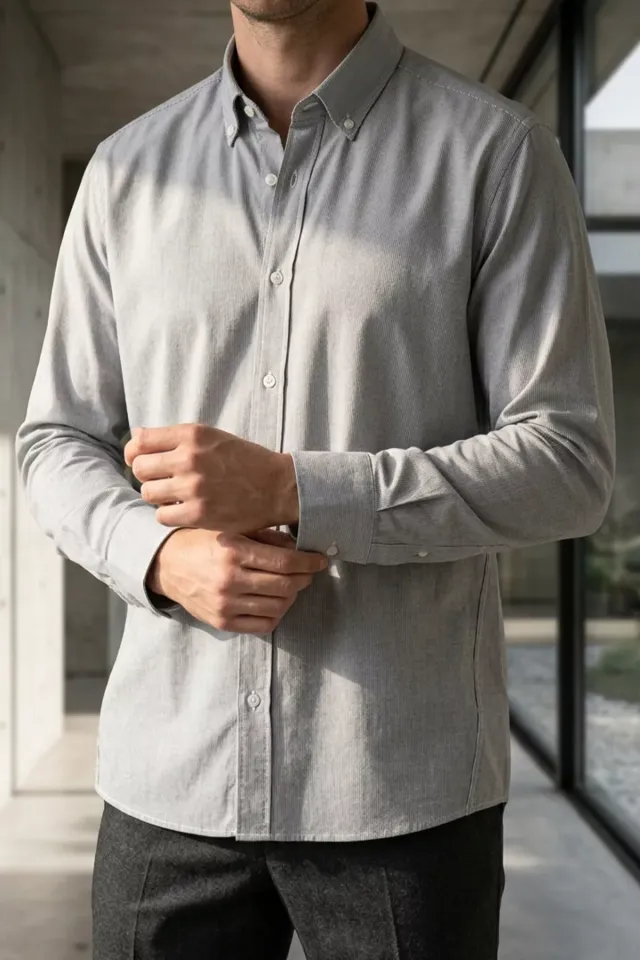 قميص رجالي بأكمام طويلة وتصميم سادة - Beyond Store
