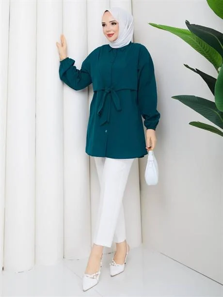 تونيك سادة بياقة كلاسيكية وأكتاف منسدلة وتصميم أزرار أمامي — أناقة خالدة بقصة مريحة وعصرية