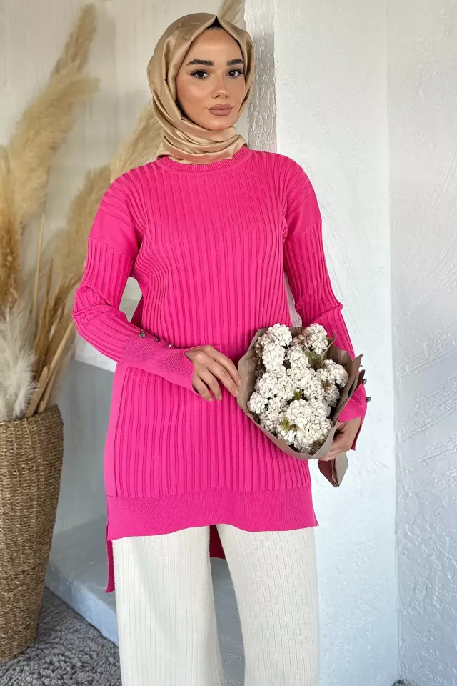 تونيك أساسي بأكمام طويلة وأزرار أمامية وقصة مريحة — قطعة متعددة الاستخدامات لإطلالة يومية أنيقة ومريحة