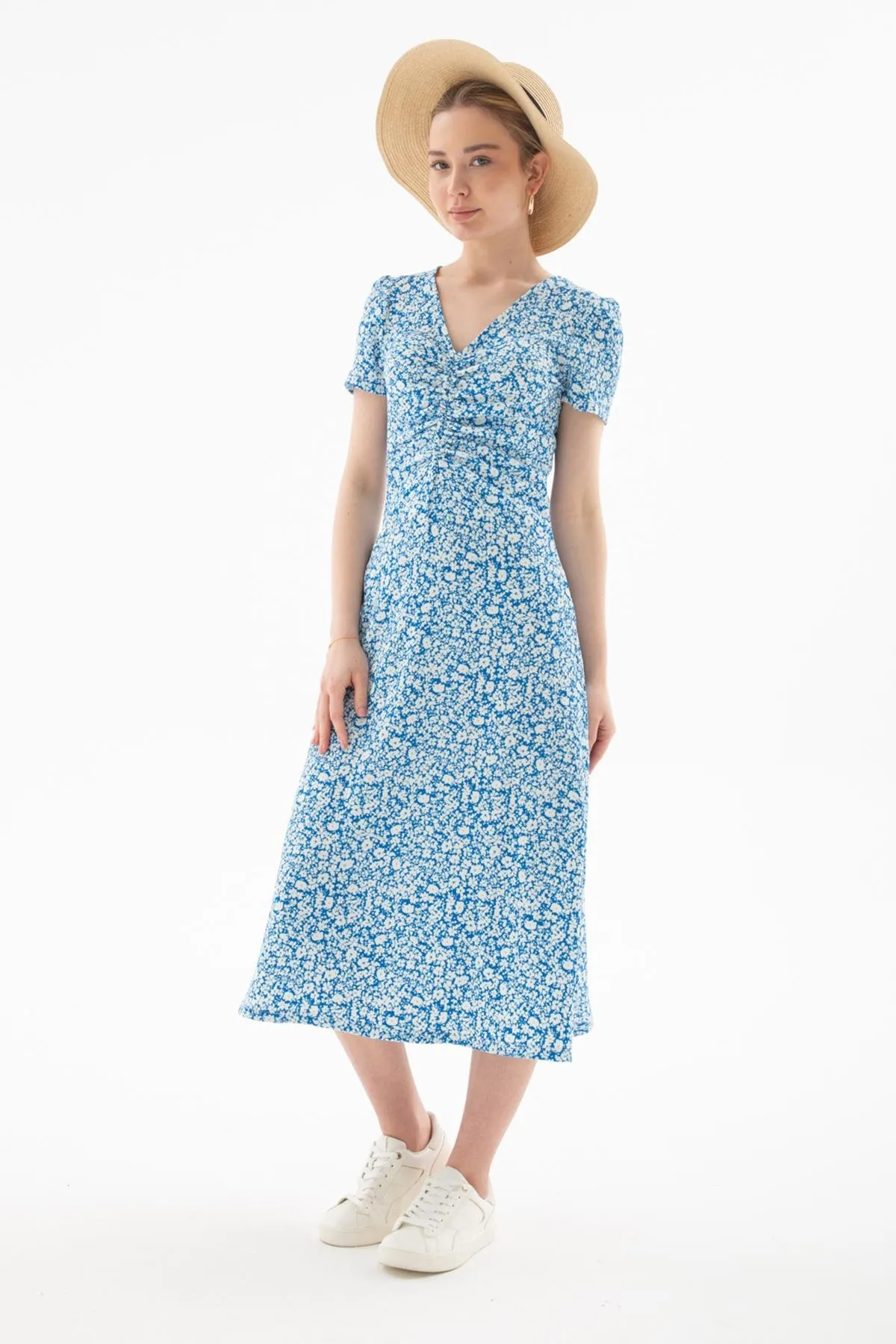 فستان قصير من الكتان بدون أكمام