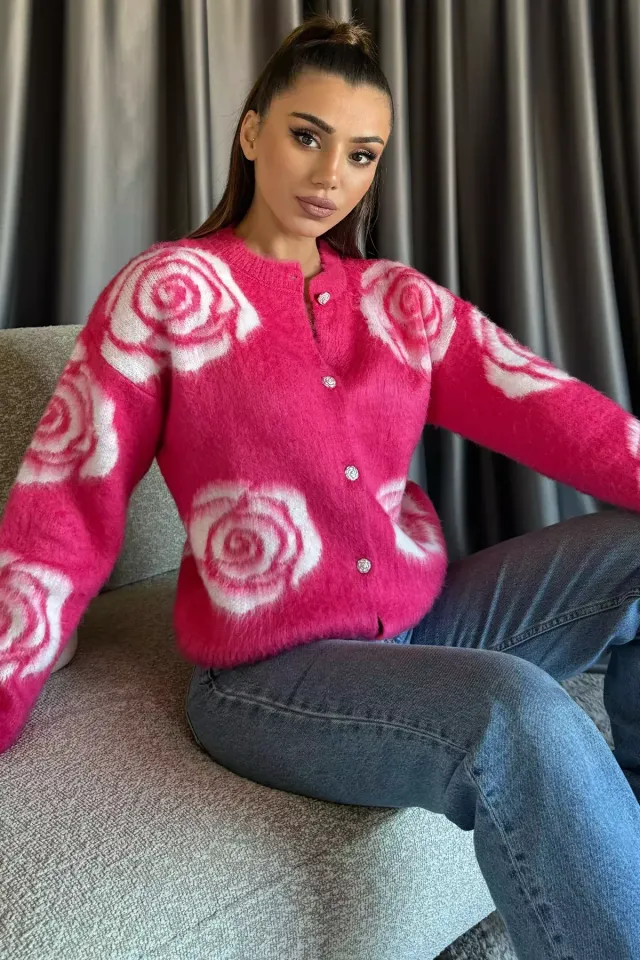 كارديجان تريكو مزين بورود صغيرة وخرز لؤلؤي للنساء