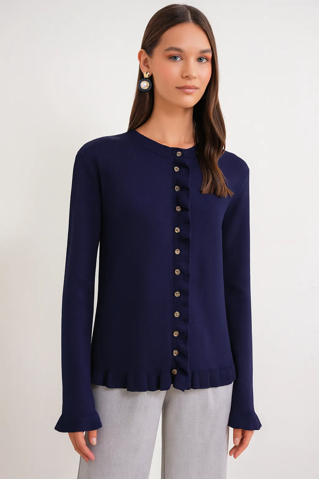 كارديجان تريكو مزين بورود صغيرة وخرز لؤلؤي ناعم، مثالي لمشاوير العيد الأنيقة للنساء