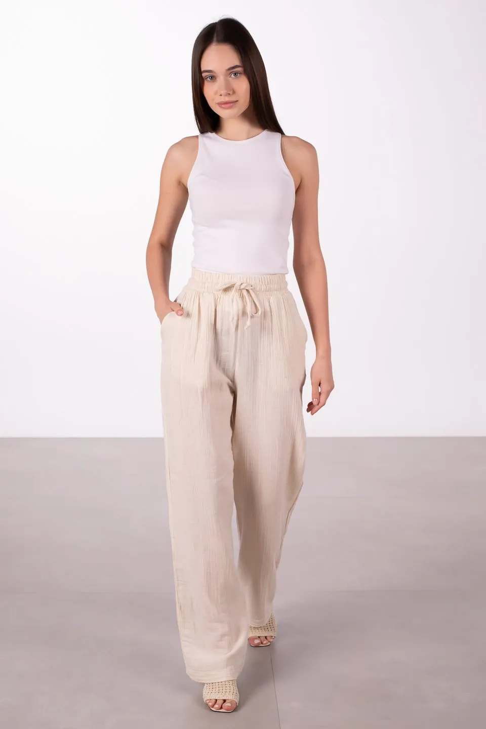 بنطلون كاجوال بقصّة مستقيمة وخصر مرتفع بلون موحد، مثالي لإطلالة ناعمة ومريحة تدوم طوال اليوم