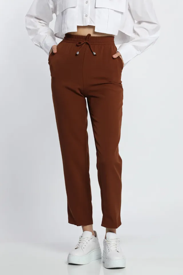 بنطلون نسائي مقاس كبير بقصة ضيقة وحزام مع تفاصيل حجرية — أناقة مدروسة تبرز القوام بلمسة فاخرة راقية