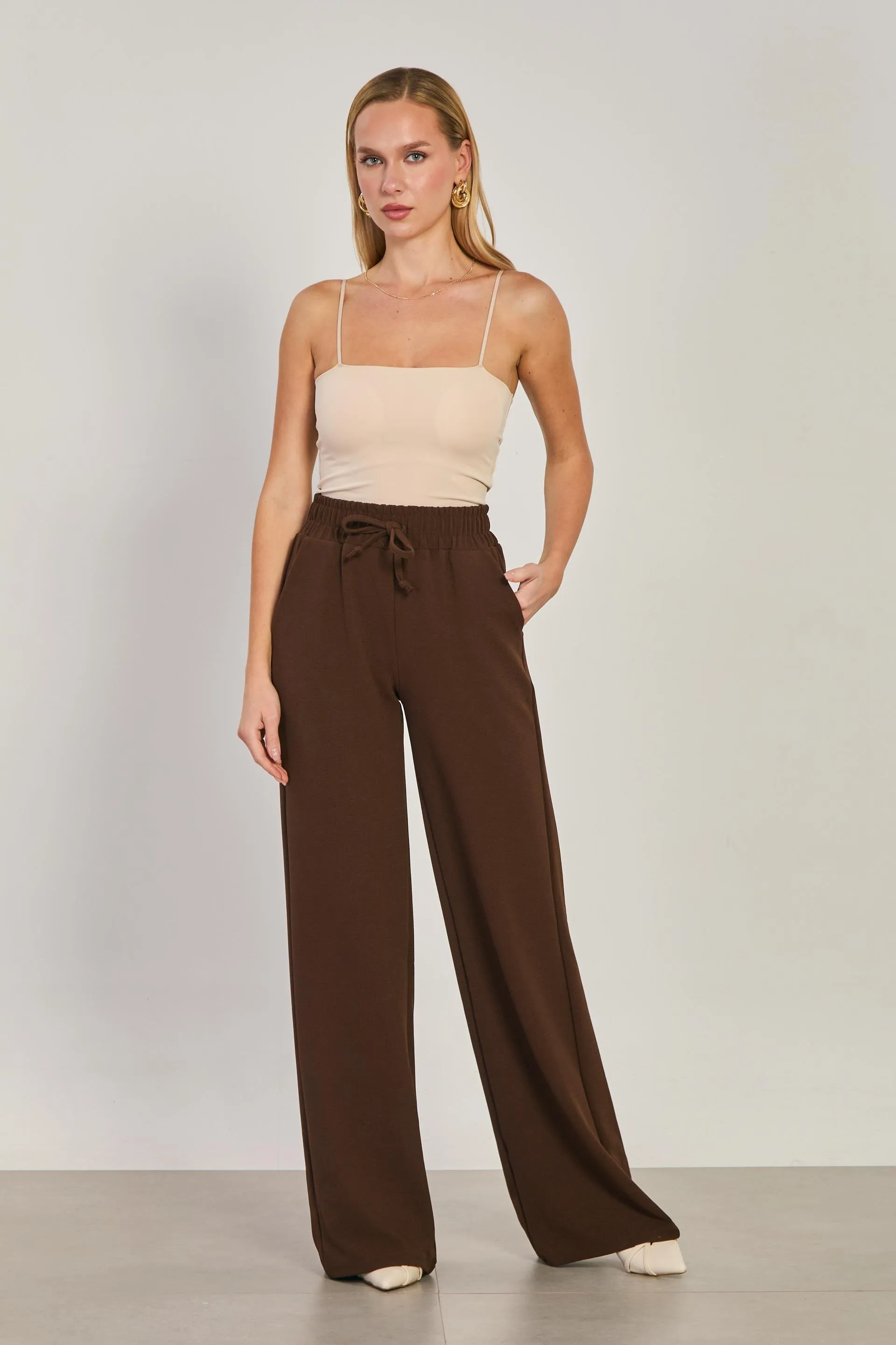 بنطلون نسائي بخصر عالٍ وساق واسعة بتفاصيل مخططة أنيقة، مصنوع من 90% بوليستر و10% لايكرا لمرونة وراحة فائقة. تصميم عصري يناسب جميع الإطلالات. قابل للغسل في الغسالة على درجة حرارة 30 درجة مئوية.
