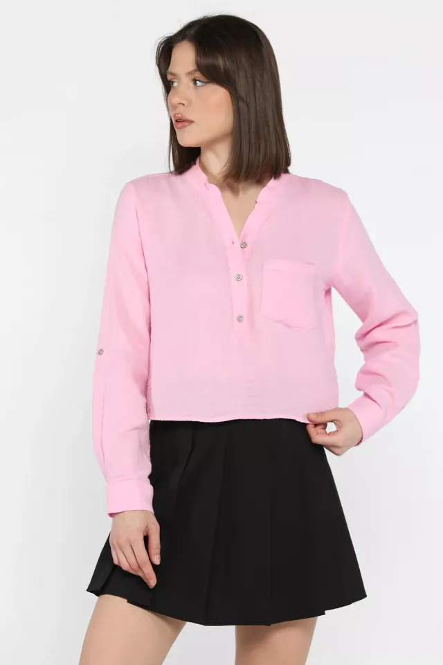 بلوزة قصيرة بأكمام طويلة و ياقة قارب مطبوع بنمط كتابة للنساء