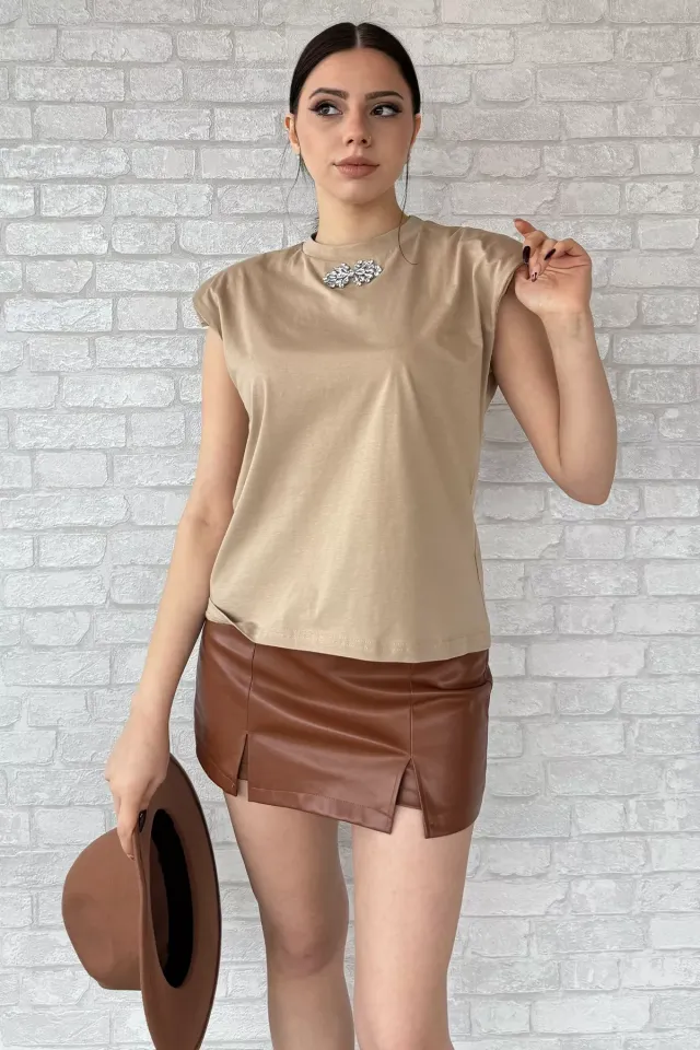 بلوزة قصيرة مجعدة بأكمام طويلة و ياقة مربعة للنساء - Beyond Store