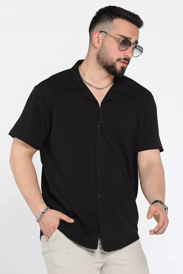 قميص رجالي بأكمام قصيرة بياقة على شكل حرف V سادة - Beyond Store