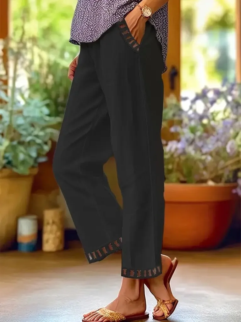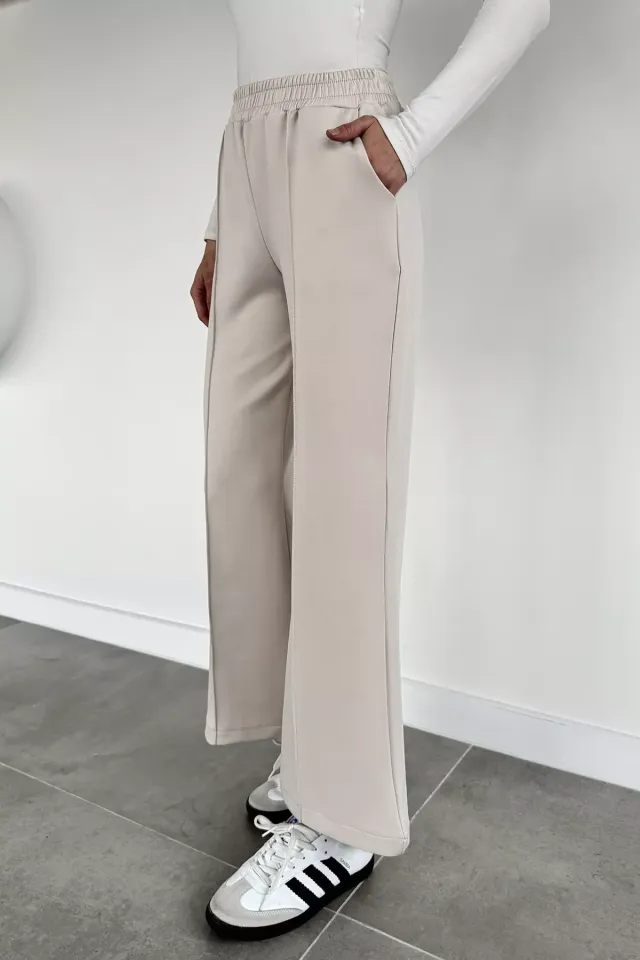 بنطلون بقصة حافة جزرية مع حزام وجيبين جانبيين. خيار عملي لإطلالات يومية أنيقة.