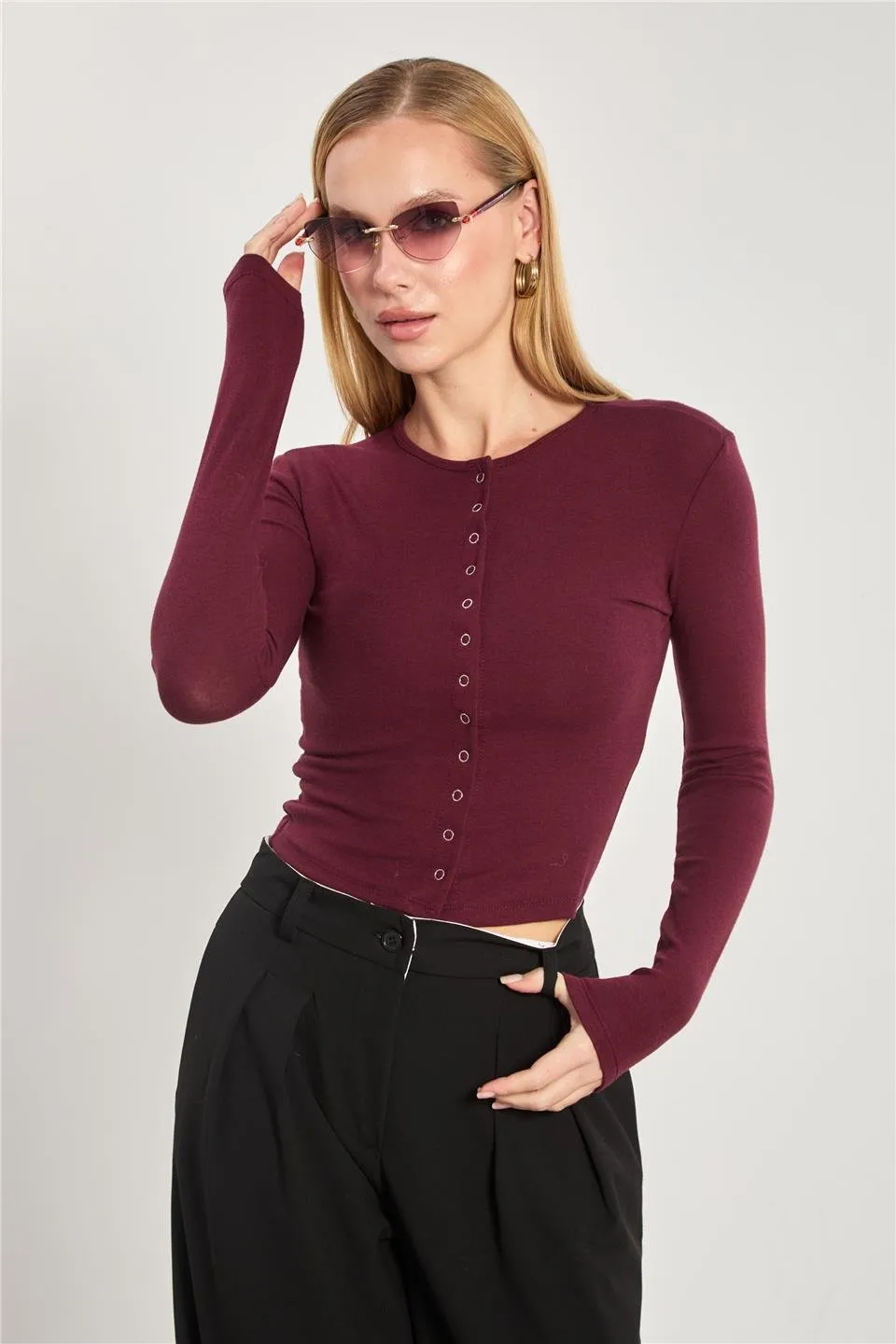 بودي قصير مطبوع بتصميم فراشة مع ياقة مستديرة وتفاصيل حجر الراين للنساء