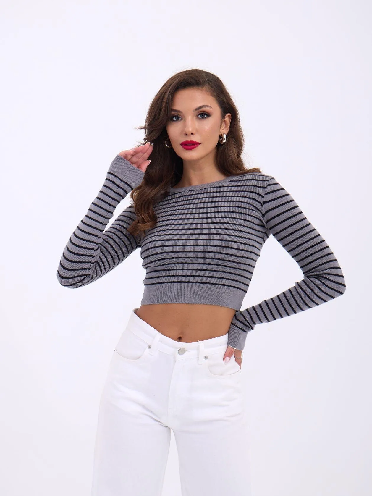 بودي قصير مطبوع بتصميم فراشة مع ياقة مستديرة وتفاصيل حجر الراين. تصميم ضيق مثالي للاطلالات الصيفية اليومية.