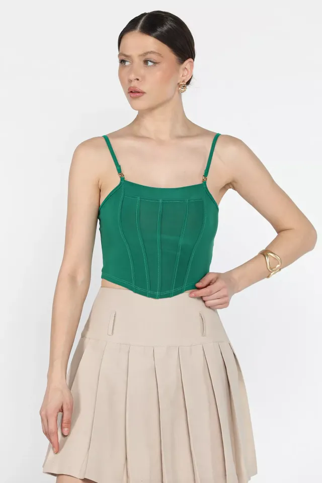بودي قصير مزين بحجارة بياقة مستديرة وتصميم كتف منخفض للنساء - Beyond Store