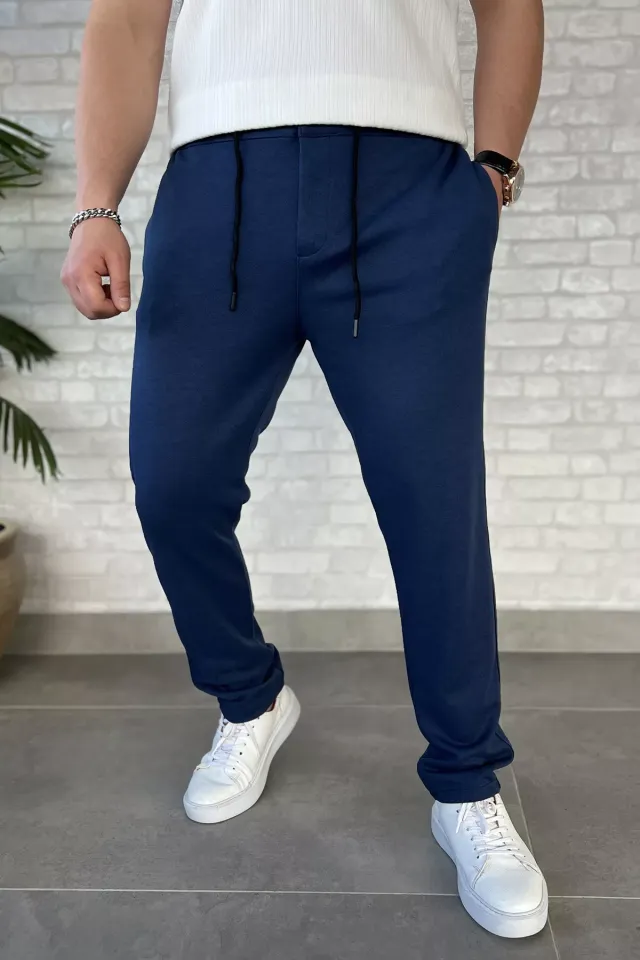 بنطال رياضي رجالي بقصّة "سليم فيت" بخصر مرن وجيوب عملية، مصنوع من 98% قطن و2% إيلاستين لقصّة مرنة وجيدة التهوية. قابل للغسل في الغسالة على درجة حرارة 30 درجة مئوية.