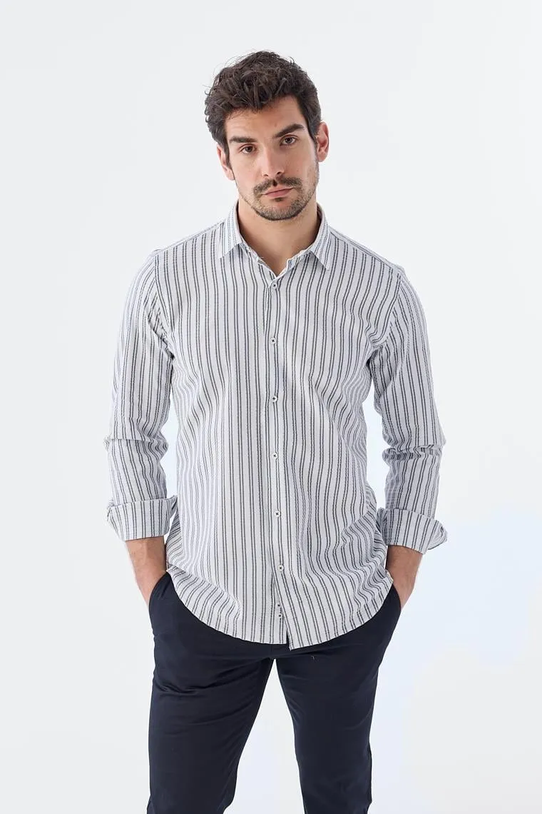 قميص رجالي بأكمام طويلة وياقة قميص وجيب مزدوج - Beyond Store