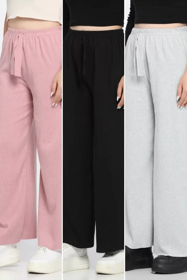 بنطال نسائي موم فيت منسدل بخصر مطاطي وجيبين