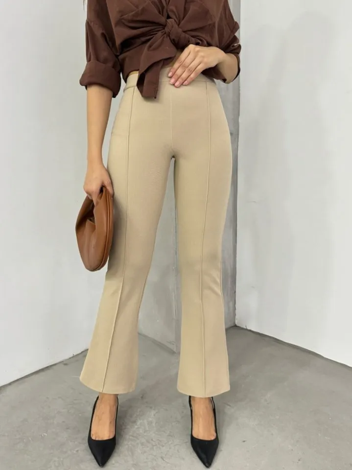 بنطال نسائي موم فيت منسدل بخصر مطاطي وجيبين - Beyond Store