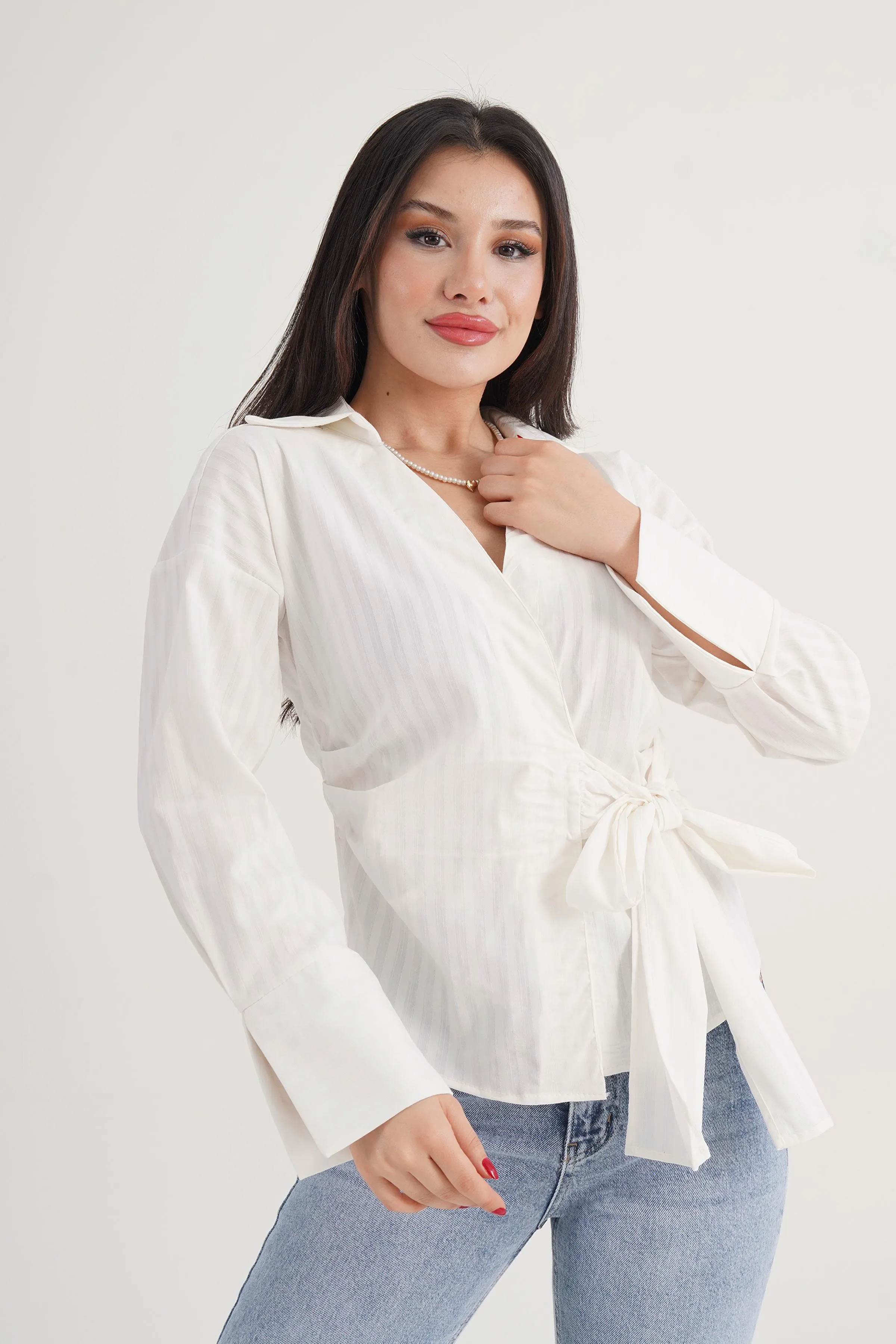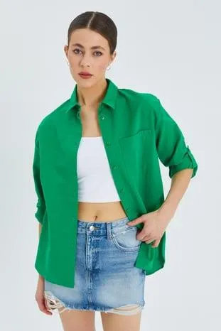 قميص نسائي سادة بأكمام طويلة و نمط إغلاق بأزرار وكسرات خلفية أنيقة، يوفر تصميمًا يمزج بين الراحة والأناقة للارتداء اليومي.