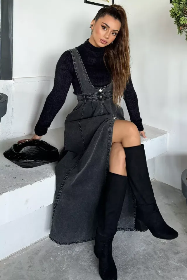 فستان ميدي بكسرات وياقة دائرية مع شق جانبي للنساء