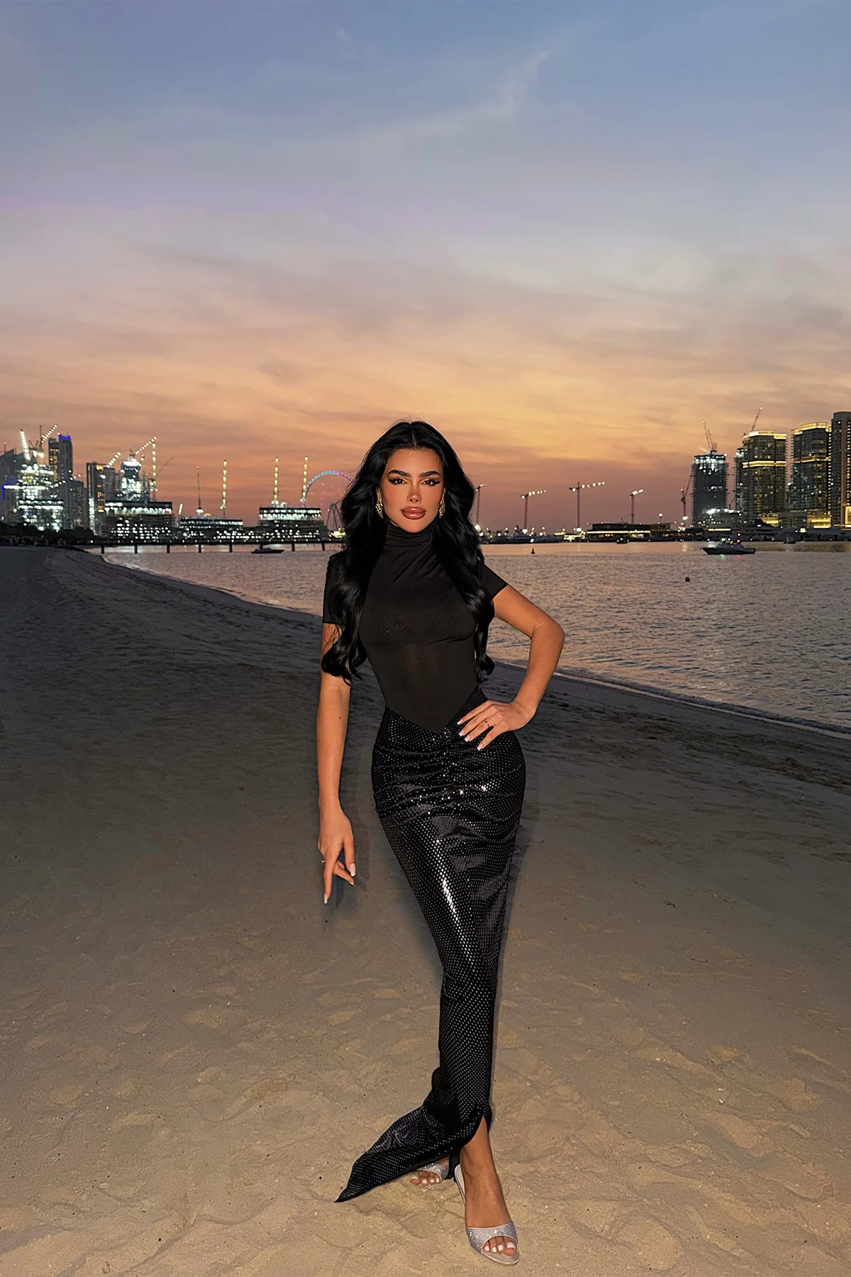 تفاصيل التول واللؤلؤ تضفي على هذا الفستان الميدي لمسة فخمة وأنيقة، مثالي لحفلات الخطوبة أو السهرات الخاصة أو كل مناسبة ترغبين فيها بإطلالة أنثوية مميزة وراقية.