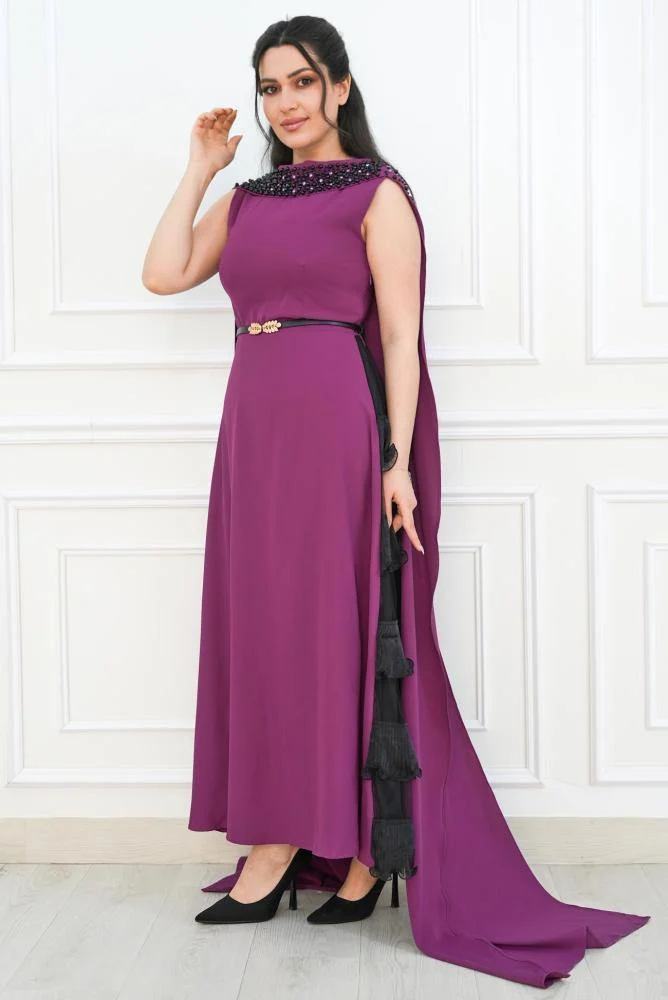 فستان سهرة ضيق بلا اكمام بفتحة صدر وجوانب
