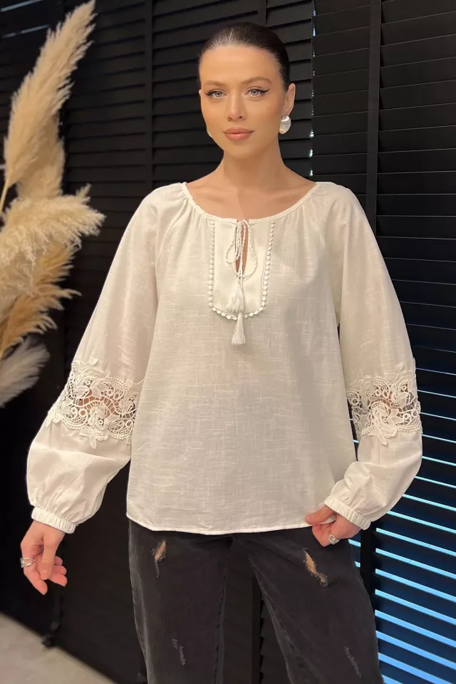 تصميم بأكمام طويلة عادية وياقة دائرية كلاسيكية