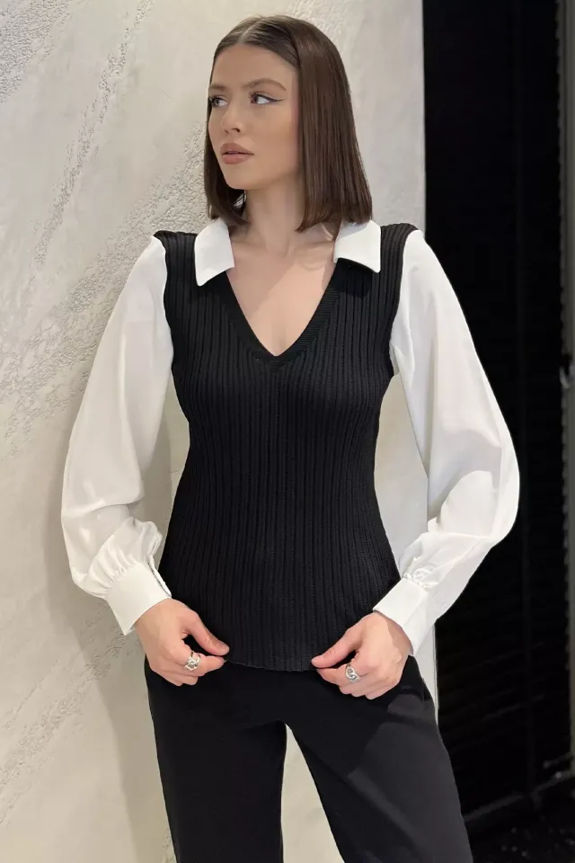 بلوزة بدون أكمام بياقة دائرية وتفصيلة فتحة مزودة بربطة. خيار صيفي يلفت النظر في التنسيقات اليومية.