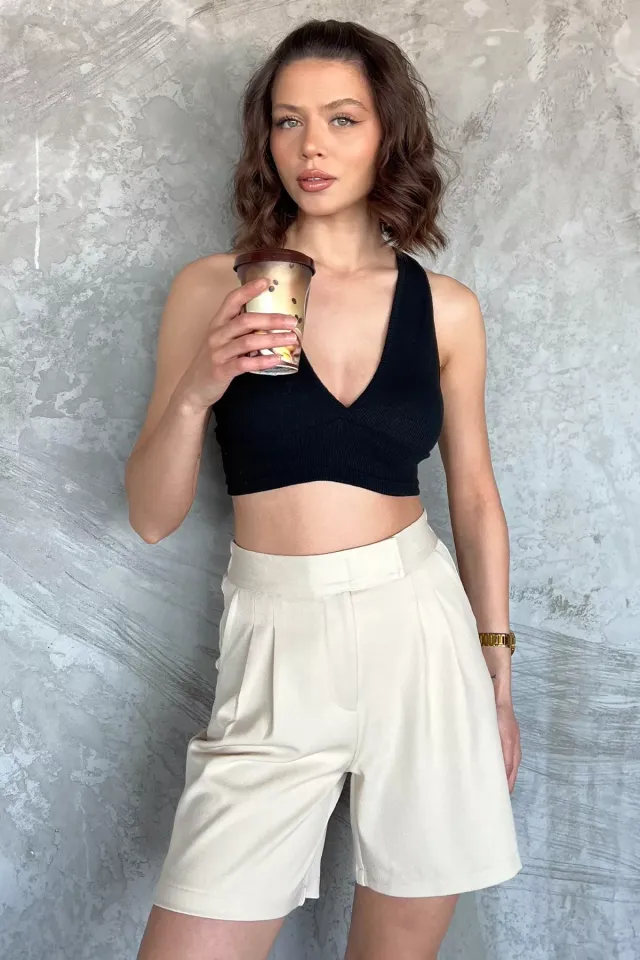شورت كارجو بسحاب أمامي وجيوب بارزة مصنوع من قماش عملي. مثالي للتنسيقات اليومية المريحة.