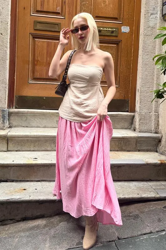 بلوزة بتفاصيل قصات ليزر بياقة دائرية واكمام طويلة. خيار مريح وعصري لاطلالات صيفية يومية للنساء.