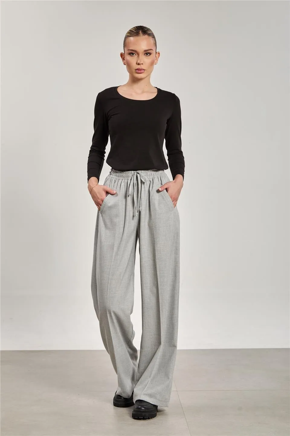 بنطال قماشي واسع بسحاب جانبي وقصة منسدلة. مثالي للإطلالات اليومية السهلة والبسيطة.