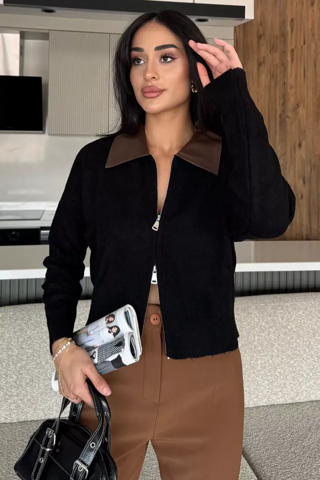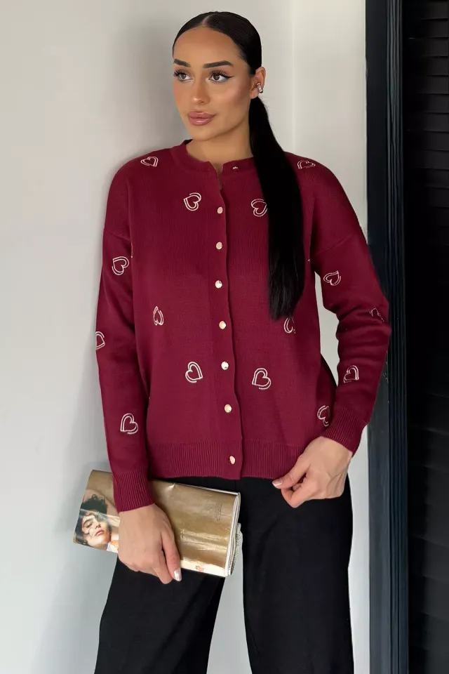 كارديجان تريكو مخرم بقصة مريحة وياقة V وجيوب عملية لإطلالة خفيفة في العيد للنساء
