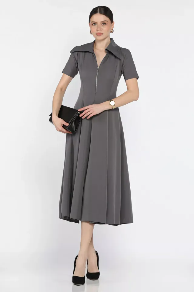 فستان ميدي بياقة مربعة وأكمام فراشة ناعمة، تصميم انسيابي يمنحك إحساسًا بالراحة والأنوثة، مثالي لحفلات الحديقة، جلسات البرانش، أو أي مناسبة تريدين فيها إطلالة أنيقة وخفيفة.