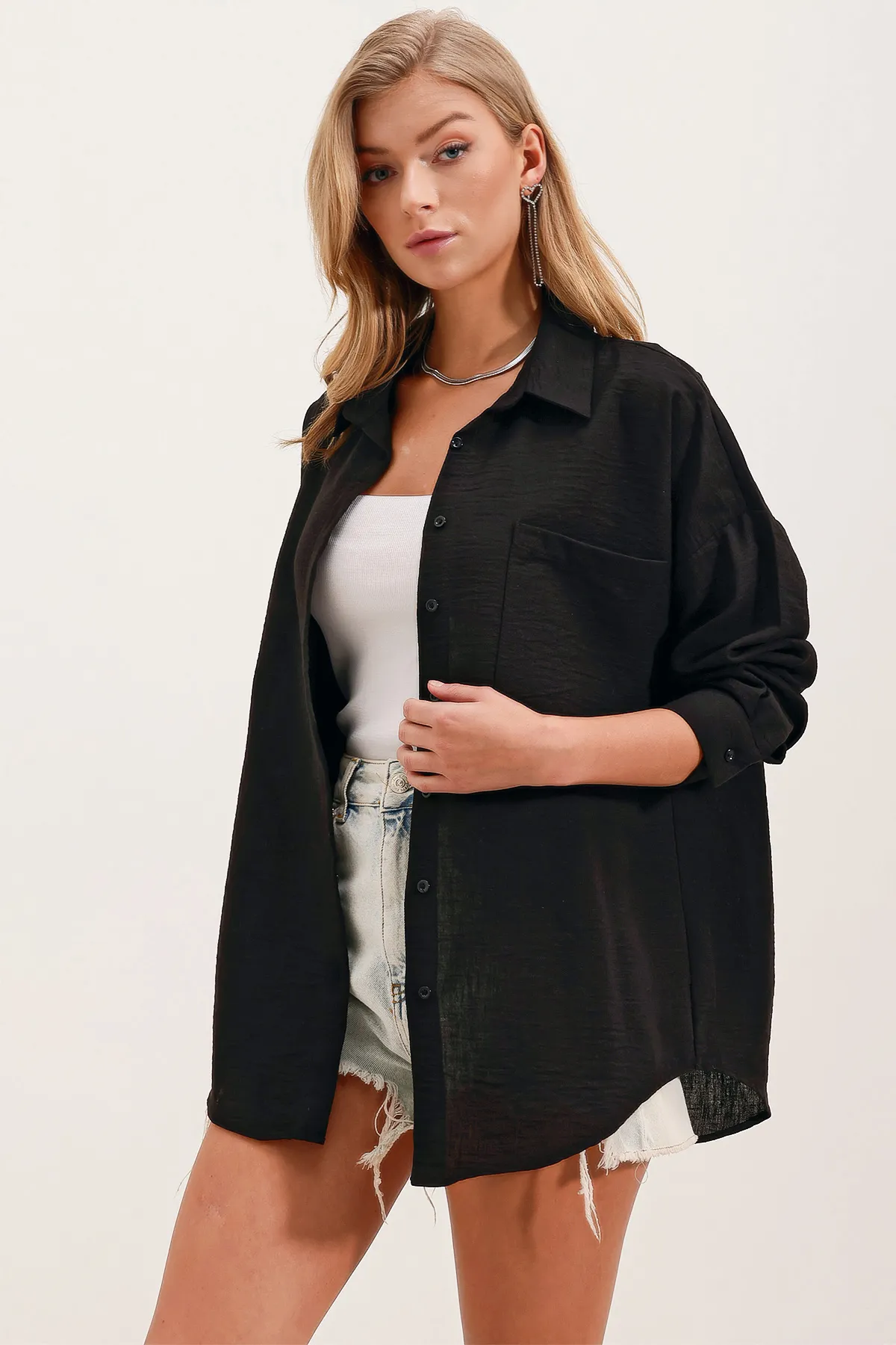 قميص نسائي بأكمام طويلة يتميز بتفاصيل الكشكشة، مما يوفر مظهرًا أنثويًا راقيًا مثاليًا لمختلف المناسبات.