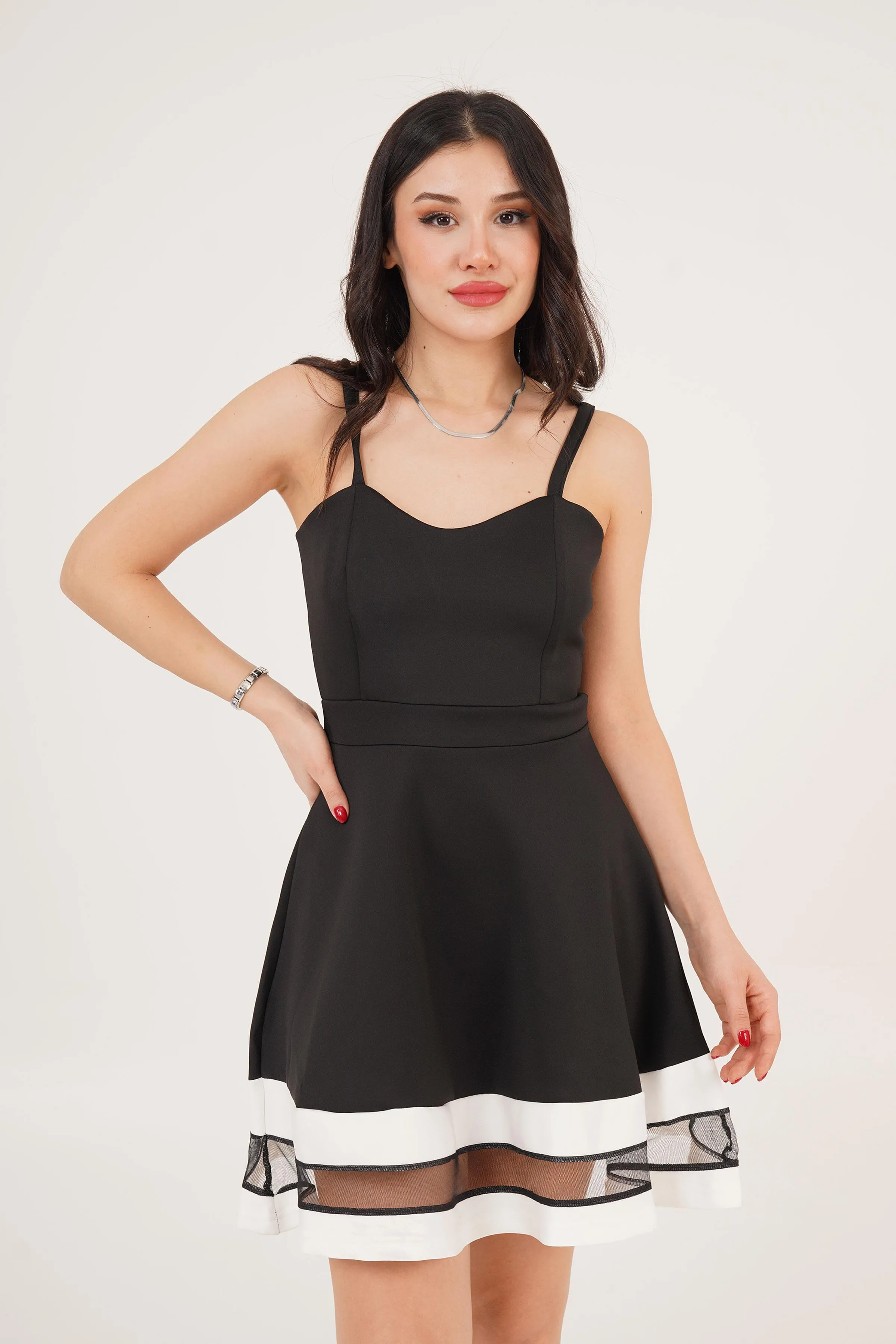 فستان نسائي كلوش قصير مزين باللؤلؤ وتنورة بكسرات