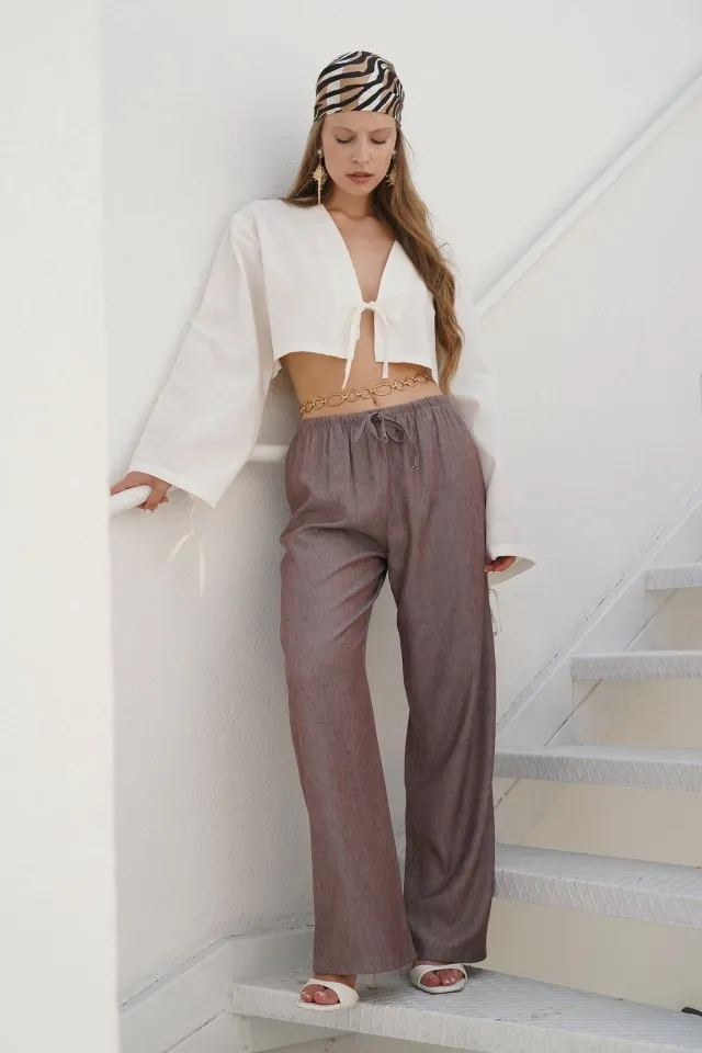 بنطال خفيف بخصر مطاطي وقصة مريحة. خيار بسيط ومريح للتنسيقات اليومية السهلة.