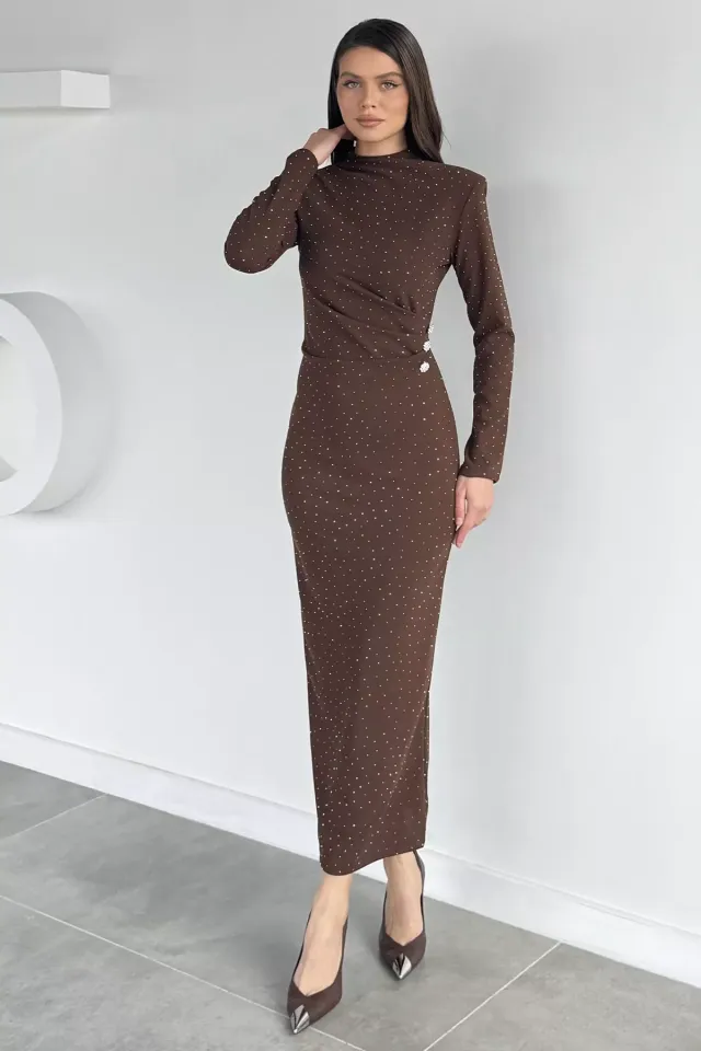 فستان ماكسي بكسرات وياقة V مع أكمام قصيرة وأزرار أمامية، قصة أنثوية عملية بلمسة مريحة وناعمة