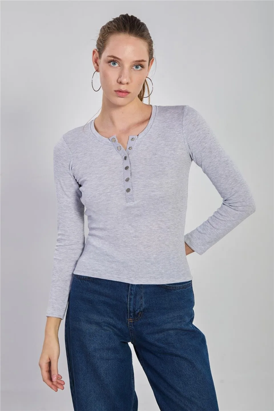 توب قصير لامع بياقة قائمة مع تفاصيل كسرات واكمام قصيرة. تصميم ضيق مثالي للاطلالات اليومية الصيفية الانيقة.