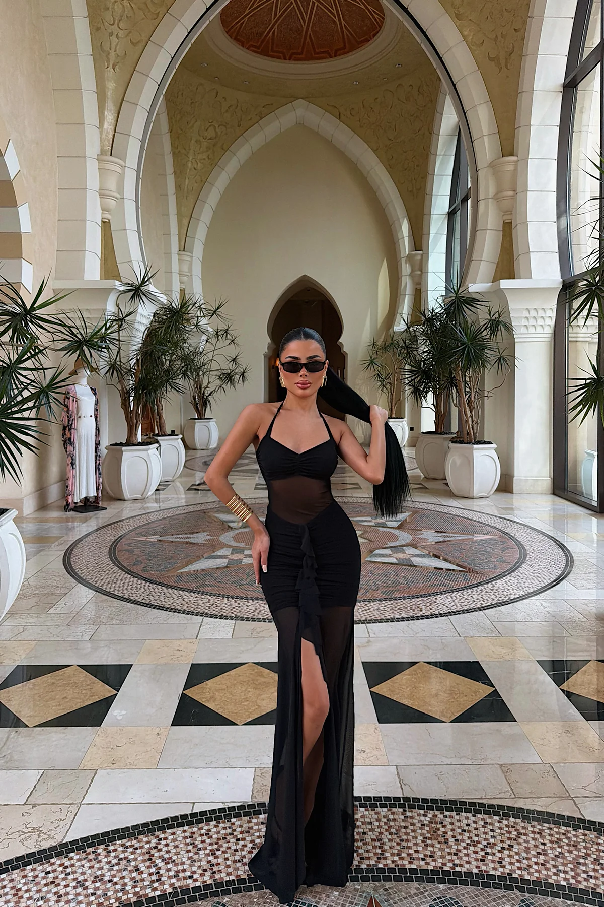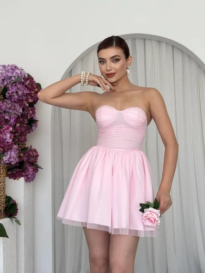 فستان ميني مزين بترتر وياقة قلب لطلات صيفية مرحة وخروجات نهارية للنساء