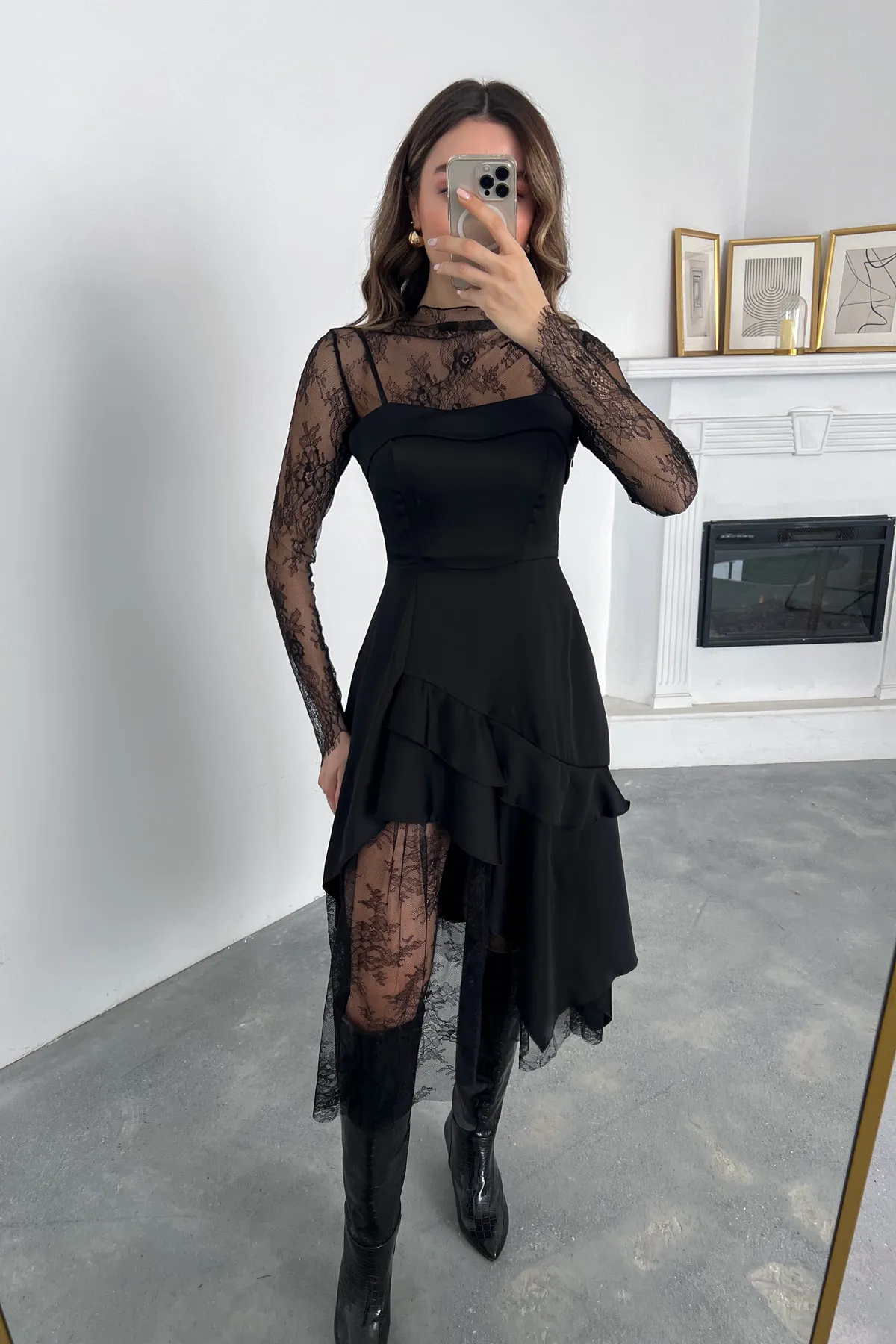 فستان سهرة ميدي تول بطيات وفتحة جانبية