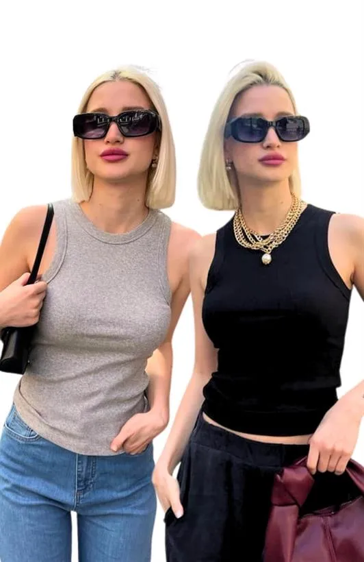 توب محبوك بياقة مستديرة مع اغلاق امامي بالازرار. تصميم ضيق مثالي للاطلالات اليومية الصيفية.