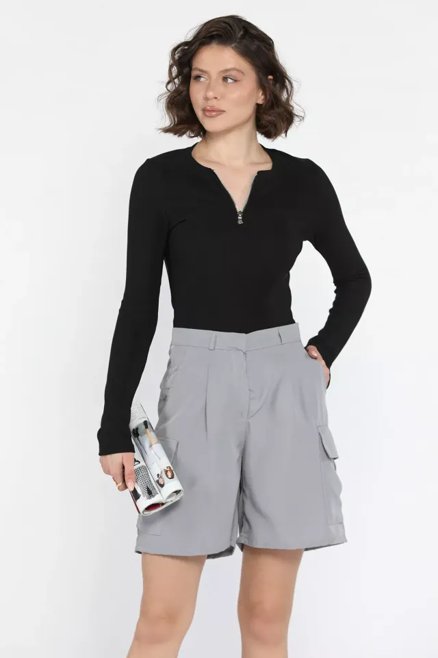 شورت بأزرار أمامية يضبط القصة بشكل بسيط. عملي للبس اليومي في الأجواء الحارة.