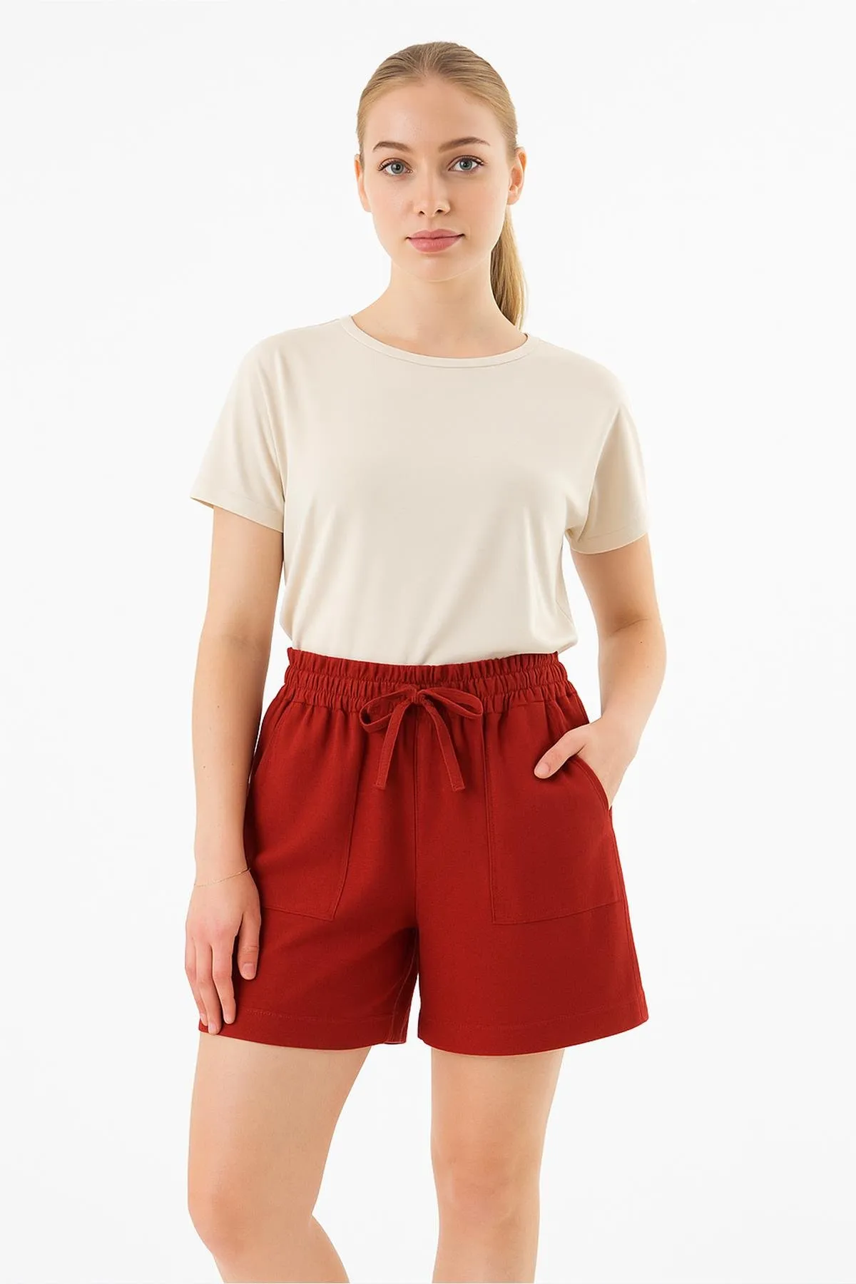 شورت نسائي بأزرار أمامية وقصة مستقيمة بسيطة - Beyond Store