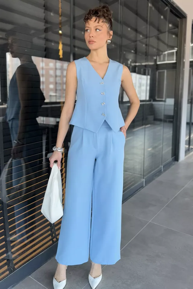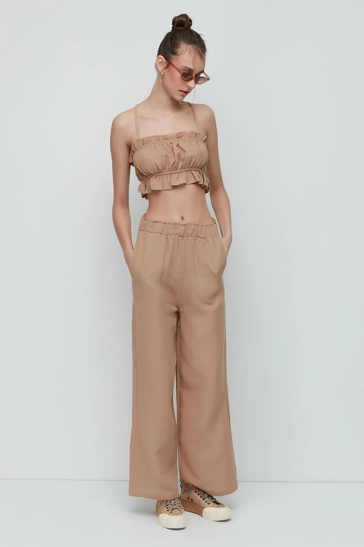 طقم بلوزة قصيرة بأكمام طويلة و بنطلون للنساء - Beyond Store